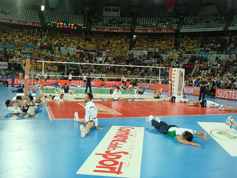 Как и в предыдущих случаях в спортивных залах самым большим пространством, к которому приковано внимание зрителей является горизонтальная поверхность, где происходит соревнование.Таким образом пространство пола вокруг зоны соревнований является идеальным местом для размещения рекламы.