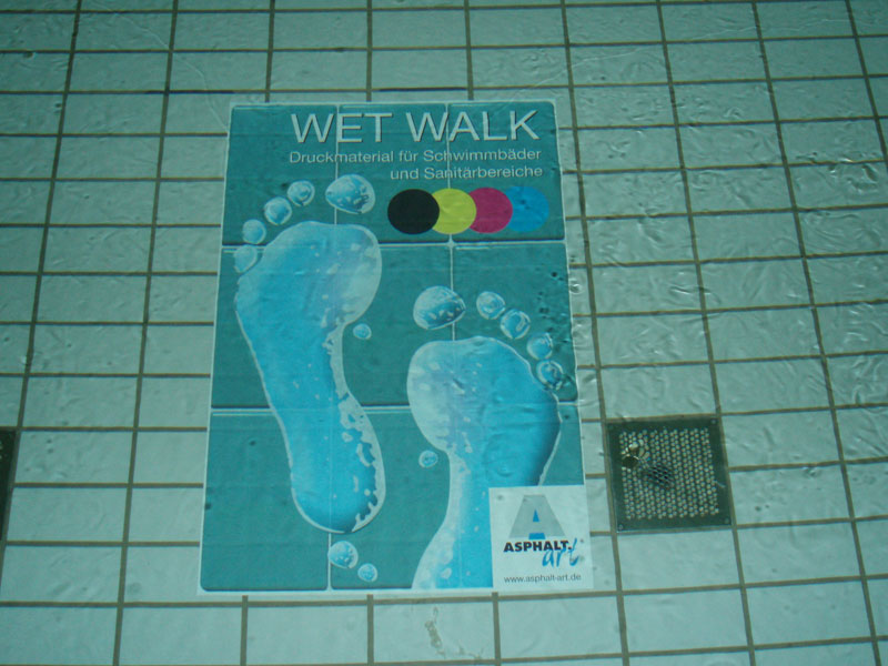AsphaltArt®СatWalk® или ClearWalk® - для напольной графики, в том числе размещенной во влажных зонах и чашах бассейнов.